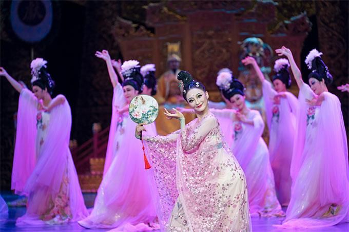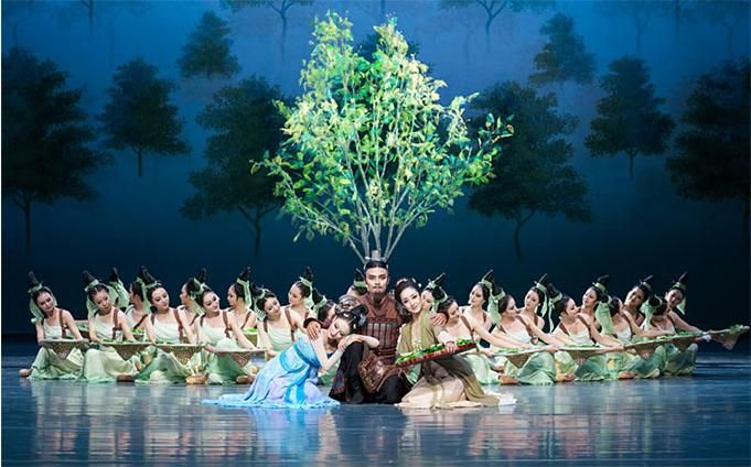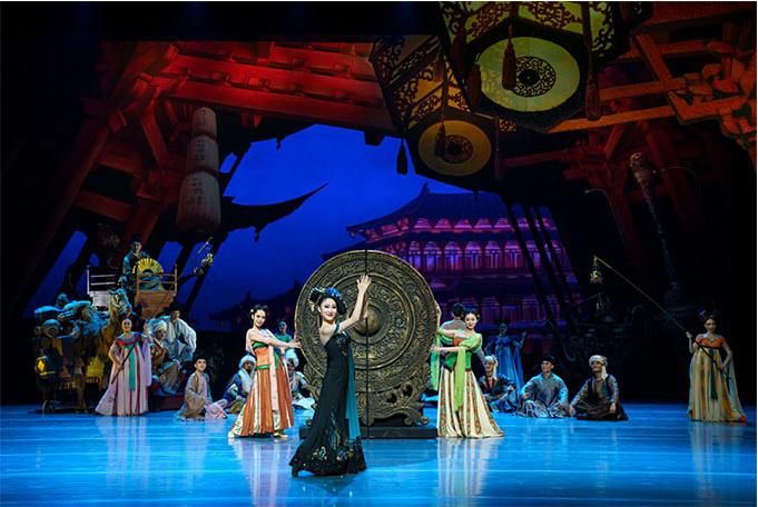 舞劇《傳絲公主》以蠶絲為戲劇元素,以蠶桑女寧兒與于闐王子尉遲的愛情為外在線索,以盛唐時中原與西域的交流往來為隱伏線索,將凄美的愛情故事與壯闊的家國情懷交織在一起,引領(lǐng)觀眾穿越到大唐盛世,感受繁興的絲路文化和豐富多彩的民族風(fēng)情。
