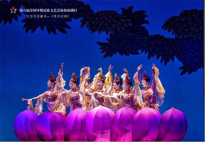 9月14日,作為第六屆全國少數(shù)民族文藝會(huì)演參演劇目,由青海省選送、青海省藏劇團(tuán)(黃南藏族自治州民族歌舞劇團(tuán))創(chuàng)作演出的藏戲《意卓拉姆》在央視網(wǎng)和國家民委門戶網(wǎng)站進(jìn)行演播。該劇講述了傳說中的仙女意卓拉姆與人間的諾桑王子相愛,歷經(jīng)挫折與磨難后終成眷屬的愛情故事,表現(xiàn)出意卓拉姆對(duì)愛情的忠貞不渝和諾桑王子堅(jiān)韌不拔的意志。