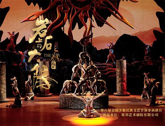 《巖石上的太陽》挖掘?qū)幭谋就廖幕夭模月劽谑赖馁R蘭山巖畫為創(chuàng)作主題,將非物質(zhì)文化遺產(chǎn)用雜技藝術(shù)的形式再現(xiàn)出來,填補了寧夏歷史上大型原創(chuàng)雜技劇的空白。
