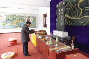 還有一位步履蹣跚的80歲錫伯族老人,在外孫女的攙扶下來到錫伯家廟。沒等走進(jìn)家廟的大門,她就潸然淚下,用顫抖的聲音喊了一聲:“老祖宗,我回來了!”老人和外孫女把從新疆帶來的南瓜籽、錫伯餅、伊犁老窖,還有一包自家菜園中的泥土擺在了家廟的祖先牌位前。上香磕頭后,老人說,這一生沒有遺憾了。臨走時(shí),老人還從家廟帶走了一包土,她說百年之后,要把它埋在自己的墳?zāi)估铩?/p>