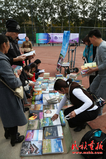 公益售書活動中,讀者閱覽蒙古文書籍