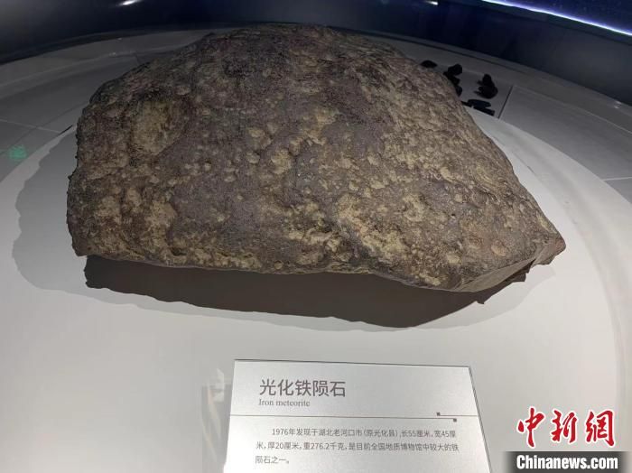 據(jù)介紹,湖北省共發(fā)現(xiàn)7處隕石地點。1976年,湖北光化縣(今老河口)發(fā)生隕石雨,這塊隕石就是地質(zhì)工作者當時在光化縣找到的。
