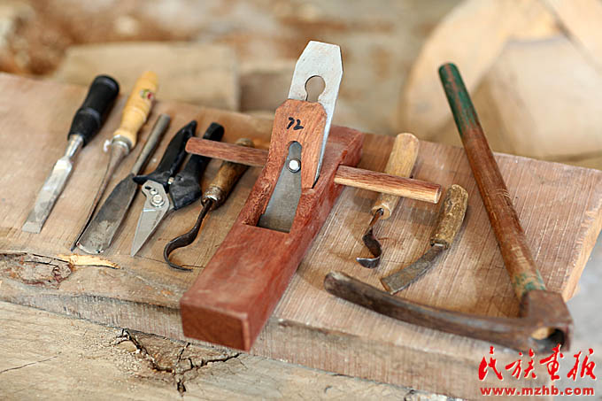 這間工作室的主人叫阿吉別克·買買達洪,主人恰巧有事外出,他的弟弟,年輕朝氣的吾蘭別克張羅著給記者們當(dāng)起了翻譯。正忙活著打磨樂器的小伙叫木沙,今年31歲,問起庫姆孜的制作工藝,他才把頭抬起來,笑著說:“我做這個十年了。一把庫姆孜,往往琴身是杏木,蓋子是松木。杏樹、松樹木切割后放在干燥的地方,一兩年后才能用。”庫姆孜有三根弦,琴弦以前用動物的腸子手工自制,現(xiàn)在有的工匠開始使用現(xiàn)成的弦。判斷庫姆孜手工藝人手藝高低的關(guān)鍵何在?木沙解釋說,“要看彈出來的聲音。木頭的原料不同,出來的聲音也不同?!边@個回答似乎也隱藏了手工藝人的絕活所在,可意會不可言傳的技藝,往往在一代代的工匠手中以師徒親授的方式傳承。