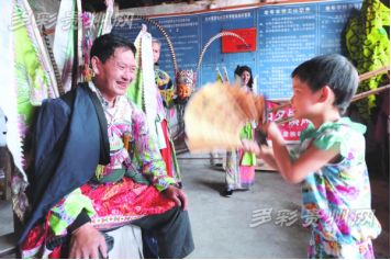 安順地戲的顯著特點是演出者頭蒙青巾,腰圍戰(zhàn)裙,戴假面于額前,手執(zhí)戈矛刀戟之屬,隨口而唱,應聲而舞。