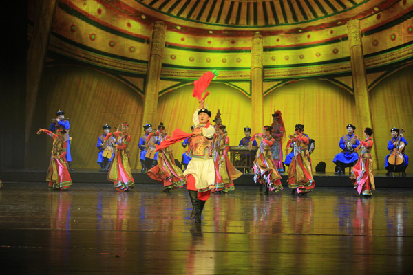 舞蹈擷取了鄂爾多斯傳統(tǒng)的《馬舞》與《火舞》等經(jīng)典風(fēng)格;聲樂采用了鄂爾多斯正宗“情歌”“酒歌”等特色,最后達(dá)到了在鄂爾多斯“酒不醉人歌醉人”“花不迷人情迷人”的藝術(shù)追求與境界。
