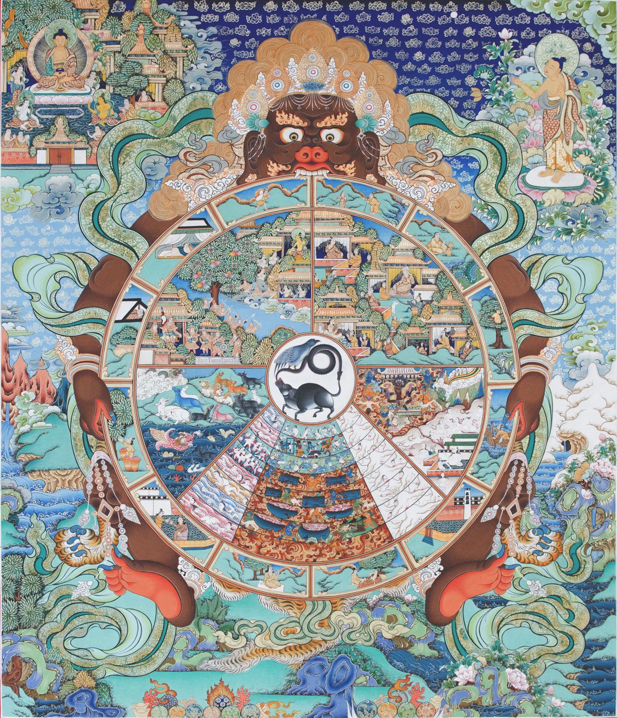 一切有情,皆以諸欲因緣,自作自受,如車(chē)輪回轉(zhuǎn)不已,生死于六條道趣,接受制裁。所謂六道,即:人、天(化生)、阿修羅(魔)、地獄、餓鬼、畜生(三惡道)。然在六道中,卻以人道為中心,因人心的善惡觀念而隨心所欲的去追求,造成報(bào)果。如人在日常中的語(yǔ)言、動(dòng)作、思想,守法實(shí)踐持三戒(五戒:不殺生、偷盜、邪淫、妄言、飲酒)以上者,可得六根整然的人身,五戒圓備者,即生大富大貴之家,長(zhǎng)壽而揚(yáng)名于世。修持五戒,加行十善(身:不殺生、偷盜、邪淫??冢翰粣嚎?、妄言、綺語(yǔ)、兩舌。意:不貪、瞋、癡。),即生天界,天分為欲界天、色界天、無(wú)色界天。上述五戒加十善,乃生欲界天,再加修正觀坐禪,證初禪至四禪,即生色界天。趨入四空定,即生無(wú)色界。但雖至非想非非想天,還是降伏業(yè)惑而已,無(wú)法脫離生死輪回,故古人說(shuō):三界無(wú)安,猶如火宅。如果人于日常生活中,雖有十善心布施,但帶有名利好勝,即生阿修羅界(須彌山腰),阿修羅是具天福而缺天德,因地污曲所致。如果人于日常中,失去道德戒行,生起慳貪心,即墮餓鬼道界,生起瞋癡心,即墮畜生界,犯五逆十惡者,即墮地獄界。以上釋義引自《君友會(huì)、六道輪回卷》綜上:六道輪回的善惡報(bào)趣,盡在人心的一念,能趨于善,即上升天界,起一念?lèi)海磯檺旱?,因果昭彰?/p>