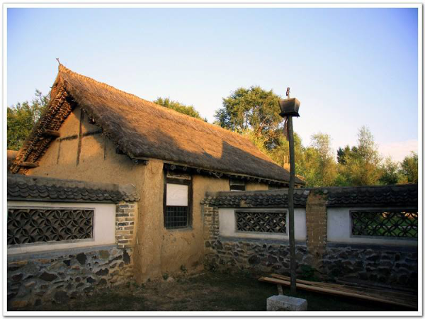 傳統(tǒng)的滿族民居的屋頂一般采用草屋頂或瓦屋頂。屋頂蓋草俗稱“苫房”,在北方農(nóng)村,這是一種很高超的手藝。通常要在木結(jié)構(gòu)的構(gòu)架頂部,先鋪上用秫秸桿(高粱桿)或者樹條子編扎的“房芭”,再抹泥填補縫隙。在其上面,將草的根部朝下,層層覆蓋,為防止滑落和被風吹散,還需要用草繩依次交叉加固。草房頂鋪設齊整,久經(jīng)風雨,草就變成了黑褐色,因此也叫“海青房”。