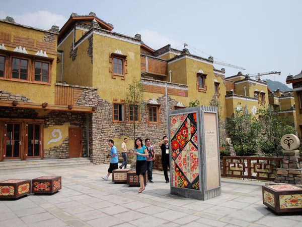 汶川地震災(zāi)后重建綜合體現(xiàn)藏、漢、羌族特色的標(biāo)志性建筑(王鐵志攝影)