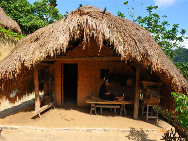 船形屋有高腳船形屋與矮腳(落地式)船形屋之分,外形像船篷,呈拱形。船形屋的建筑特點(diǎn)是,平面呈縱長方形,兩端山墻設(shè)入口,屋蓋一般是半圓拱形,房屋的輪廓像是一條倒扣的帆船。這類房屋不設(shè)窗戶,只從兩端開門,前面有一個陽臺,置一個樓梯供上下,進(jìn)門后整個“船”身分為三節(jié),像三個艙,各有小門相通,第一節(jié)是“廳”,設(shè)有閣樓,存放糧食與雜物、家什等;第二節(jié)是臥室,除了放床以外,還放火灶,作為蒸酒或烤火之用;第三節(jié)面積最小,開一個后門,是每天舂米和放置生產(chǎn)工具、雞窩的地方。