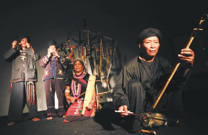 佤族人聚居在云南省西盟佤族自治縣,他們世代敬山敬樹。9月11日,4名佤族農(nóng)民從西盟縣司崗里村來到北京,在著名的798藝術區(qū)尤倫斯當代藝術中心唱起了“古歌”,用自制的樂器和原始的舞步,演繹著他們自己的生活、勞作和儀式。