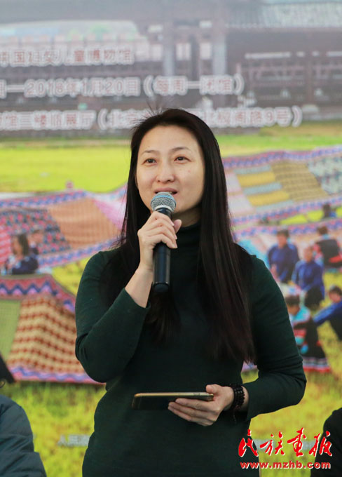 會上中國民族博物館黨委副書記、副館長張志文向少數(shù)民族作家們介紹了展覽,他說:“土家族是一個歷史悠久的民族,現(xiàn)在有835萬人口。土家織錦也有兩千多年的發(fā)展歷史,有250多種傳統(tǒng)圖案,是中國民間五大織錦之一,堪稱中國服飾文化中的奇葩。中國民族博物館從歷年征集收藏的300多幅清代以來的土家織錦中,選取了156幅精品土家織錦、21分鐘傳承人視頻和120余幅土家民族風情照片。我們和中國婦女兒童博物館合作舉辦了這個高品質的專題展,旨在傳承和弘揚土家族國家級非物質文化遺產?!?/p>