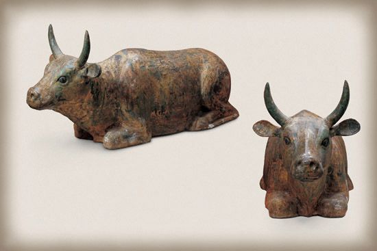 另一方面,西夏墓中隨葬制作如此精美的銅牛,說(shuō)明了牛在西夏農(nóng)業(yè)生產(chǎn)中的重要地位,為我們研究西夏社會(huì)的農(nóng)業(yè)經(jīng)濟(jì)提供了一個(gè)實(shí)物佐證。敦煌榆林窟壁畫(huà)中的西夏農(nóng)耕圖,描繪出西夏同中原地區(qū)一樣的 “二牛抬杠”的犁地場(chǎng)景。牛耕在發(fā)展西夏農(nóng)業(yè)經(jīng)濟(jì)中無(wú)疑起了很大作用。