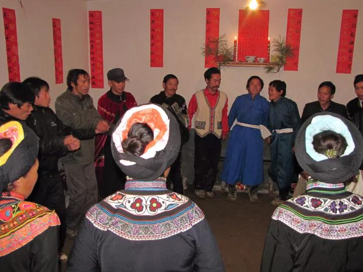 3、源自于宗法禮教。在阿買懇的唱詞中,有阿買懇是君長制定的規(guī)矩之說,根據(jù)彝族典籍文獻(xiàn)記載和民間傳說,反映古代彝族水西君長家和烏撒君長聯(lián)姻嫁娶時(shí),都興阿買懇,說明阿買懇是君長興起這一說法是由根據(jù)的。彝族是一個(gè)很重視宗法禮教的民族,各種禮儀習(xí)俗和規(guī)章制度比較細(xì)密而嚴(yán)格,作為人生重大禮儀的婚儀,必然有許多規(guī)矩,阿買懇的幾十項(xiàng)程序性對答吟誦,就足以說明了這一點(diǎn)。但它也并非完全是“君長制定的規(guī)矩”,它更多的是百姓的禮俗和情趣,因?yàn)?,在阿買懇唱詞中反映的勞動場景的內(nèi)容很多。實(shí)事求是的講,阿買懇應(yīng)該是由君長所倡導(dǎo)和認(rèn)可,由廣大彝族民眾興起,經(jīng)布摩和民間歌師共同創(chuàng)作、經(jīng)民眾在演唱過程中反復(fù)修訂而形成的。