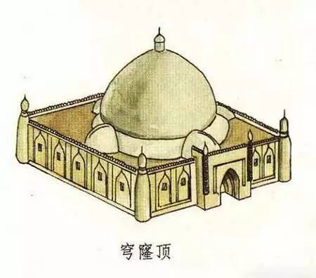 穹窿本身指天空,也形容如天空般中間高、四周下垂的樣子,同時也泛指高成拱形的建筑形式。穹窿頂就是穹窿式的屋頂,一般從外觀來看為球形或多邊形的屋頂形式。如,伊斯蘭教清真寺中的天房,室內頂部呈半圓形,就可以叫做穹窿頂。此外,蒙古族的蒙古包等圓頂?shù)拿窬?,也可以歸為穹窿頂建筑一類。因此,穹窿頂也稱圓頂。