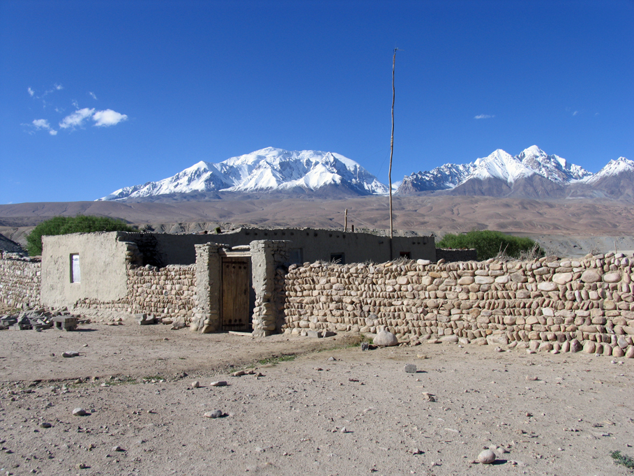 塔吉克族人過(guò)去修建的房屋多為石木結(jié)構(gòu),現(xiàn)在,一般為土木結(jié)構(gòu)的正方形平頂房屋。塔吉克族的牲畜棚圈緊靠住房,在外出放牧的時(shí)間里,大多數(shù)牧民會(huì)在牧場(chǎng)上建簡(jiǎn)陋的矮土房,只有少數(shù)人會(huì)使用氈房。從事現(xiàn)代牧業(yè)生產(chǎn)的一部分塔吉克族,他們會(huì)在草原支起白色的氈房,也會(huì)在農(nóng)區(qū)住著平房,還有的也在縣城住著樓房。