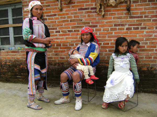 相對(duì)來(lái)說,男子服飾除包黑色包頭上沒有什么特別。但喜歡紋身,其中多數(shù)在胸脯刺牛頭,手腕刺鳥,腿上刺山林圖案。外出,??婊ú即宕鏖L(zhǎng)刀或火槍,給人以雄壯威武之感。
