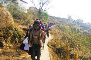 彝族新娘出嫁時,雙腳是不能落地的,不然會被認(rèn)為不吉利。因此,彝族也就有了“背新娘”的習(xí)俗。