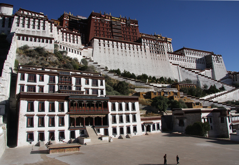 布達拉宮還有一些附屬建筑,包括山上的朗杰札倉、僧官學校、僧舍、東西庭院和山下的雪老城及西藏地方政府的馬基康、雪巴列空、印經院以及監(jiān)獄、馬廄和布達拉宮后園龍王潭等。