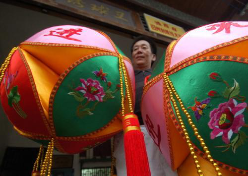 壯族繡球的制作工藝流程主要有:漿布——球面貼面——球瓣剪裁——球面描圖——球面刺繡——球瓣對折縫合——球瓣填充——縫合球瓣——球瓣合成——成品裝飾。靖西繡球的美主要體現在造型結構、刺繡紋樣和色彩組合上。其造型結構特征體現了豐富的形式美感,一是形體的融合統(tǒng)一,二是整體的對稱均衡。其刺繡紋案體現了精湛的手工技藝,如傳統(tǒng)紋飾只要為動物紋和植物紋兩類,動物紋只要有龍、鳳、鴛鴦、喜鵲、仙鶴、蝴蝶、魚等,植物紋主要有梅、蘭、竹、菊、松樹、牡丹、水仙、荷花等,另外也有人物繡,如八仙過海等。繡球 的精美炫目,跟大膽豐富的色彩組合有很大關系,靖西繡球強調色相強有力的對比張力和視覺刺激性,用高純度的色相進行強烈對比,凸顯了極富裝飾性而又高度和諧統(tǒng)一的色彩搭配原則。
