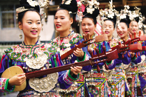 2015年6月13日是我國第十個(gè)“文化遺產(chǎn)日”,當(dāng)天,許多民族地區(qū)都開展了相關(guān)活動(dòng),展示“非遺”項(xiàng)目的保護(hù)成果。在貴州省黎平縣,當(dāng)?shù)囟弊迦罕妳R聚在縣城,開展演侗戲、唱侗族大歌、跳侗族蘆笙舞等展演活動(dòng),自信展示侗族“非遺”文化魅力。