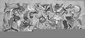 此外,還有一些苗繡圖案反映了歷史事件,比如貴州省博物館在上世紀(jì)80年代從一名苗族婦女手中征得一件上世紀(jì)50年代做成的苗族女服。令人驚嘆的是,經(jīng)考證,該衣的袖片圖案取材于一段真實(shí)的歷史——1855年張秀眉領(lǐng)導(dǎo)苗族農(nóng)民在臺拱起義的歷史事件。