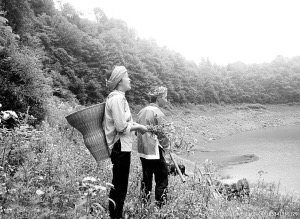 記得小時(shí)候有一回上學(xué),我在“之”字形的山道上遇到一撥“背腳佬”。只見他們那布滿蚯蚓般青筋的腿肚顫抖著,手中鑲著鐵釘?shù)拇蜩圃谑迓飞隙‘?dāng)?shù)貫R出火星,草鞋里的雙腳踏著堅(jiān)實(shí)的土地。每當(dāng)轉(zhuǎn)過一個(gè)彎,他們就一邊把打杵支在背簍下面,一邊發(fā)出“哎——喲嗬——”的吼聲。抹下一串汗珠,疲勞仿佛也被扔下山,引起陣陣回響。不知是誰還吼起了粗獷的山歌:“郎在高山打傘來,姐在房中做花鞋,雙手接過郎的傘,用手把姐抱在懷……”