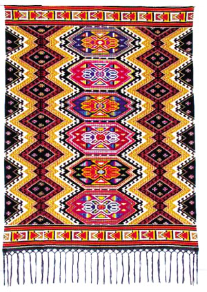 在長期的藝術(shù)實(shí)踐中,葉水云感到自己的專業(yè)美術(shù)水平有限。于是,她考入鳳凰職業(yè)中專學(xué)習(xí)美術(shù)專業(yè),并被留校任教,后又在湘西州教育學(xué)院進(jìn)修大學(xué)美術(shù)專業(yè)?!巴良铱楀\沒有草稿,最重要的一個(gè)環(huán)節(jié)就是配色。以前配色沒有理論指導(dǎo),主要從個(gè)人感覺出發(fā),喜歡紅、綠等艷色系。除了講究圖案平整以外,配得好不好自己也不清楚。學(xué)習(xí)后才慢慢認(rèn)識(shí)到,配色應(yīng)注重冷暖色調(diào)的對(duì)比與襯托?!彼?,葉水云織出來的“西蘭卡普”色彩更為統(tǒng)一調(diào)和,艷而不俗,粗獷中有細(xì)節(jié),大氣中有精巧,看上去更加舒服。