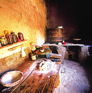 居室內(nèi)紅箱、畫柜耀人奪目,墻上掛有阿拉伯文字的對聯(lián)。屋檐下的臺階上,始終放著一個隨時洗手洗臉用的“湯瓶”,既節(jié)約又清潔。東西偏屋為晚輩居住,南邊為牲畜和草料房。東鄉(xiāng)人認為家居四方平正,財源廣,子孫榮,門庭興旺。廚房是獨立的,砌鍋灶,有大案板,方便以面食為主的飲食習慣。
