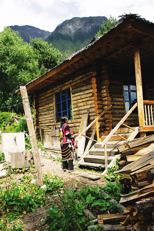 2006年,當(dāng)我再次出現(xiàn)在珞巴族小伙兒達(dá)瓦面前時,他簡直無法相信眼前的事實,只是站在一步之遙的地方,默默地朝我笑著,笑容略帶羞澀。我問:“還記得我嗎?”他點點頭說:“你真的來了?!比缓蠼又f:“我們一起去看群宗(達(dá)瓦的妻子)吧!”于是,我跟著達(dá)瓦走進了密林深處的西藏自治區(qū)林芝地區(qū)米林縣南伊珞巴族民族鄉(xiāng)的瓊林村。