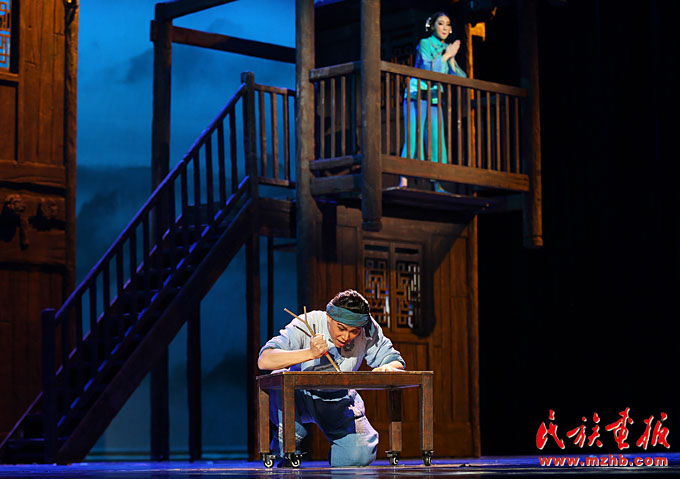 2017年12月28日,來自貴州的首部水族題材舞劇《木樓古歌》在民族劇院上演。舞劇中弘揚的至純至善的品質(zhì)和捍衛(wèi)家國尊嚴(yán)的勇氣、跌宕起伏的劇情和演員們嫻熟到位的表演以及神秘新鮮的民族文化符號,都深深感染著首都觀眾?!赌緲枪鸥琛酚酶哌h(yuǎn)的立意和高超的藝術(shù)水準(zhǔn)為北京歲末的演出畫上了圓滿的句號。