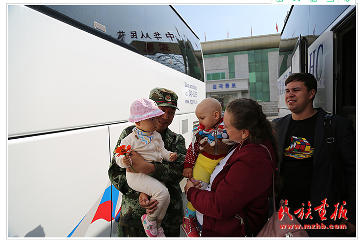 第一次來(lái)琿春旅游的俄羅斯游客亞娜帶著她1歲的寶寶剛?cè)刖?,恰巧遇到帶孩子出?lái)的中國(guó)邊防戰(zhàn)士,他們便打起了招呼