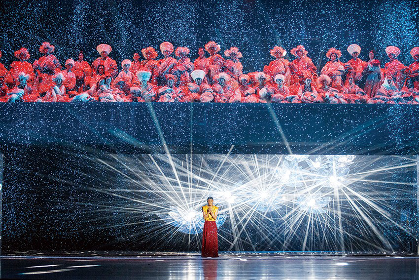 2015年12月27~29日,中央民族歌舞團(tuán)大型原創(chuàng)舞劇《倉(cāng)央嘉措》在民族劇院隆重上演,引起轟動(dòng)。這是2015年度國(guó)家藝術(shù)基金最高資助項(xiàng)目,也是中央民族歌舞團(tuán)建團(tuán)60余年來(lái)創(chuàng)排的首部舞劇。它由中央民族大學(xué)博士生導(dǎo)師丹珠昂奔教授編劇,國(guó)家一級(jí)導(dǎo)演、中央民族歌舞團(tuán)團(tuán)長(zhǎng)丁偉擔(dān)任總導(dǎo)演,國(guó)家一級(jí)作曲家李滄桑、著名舞臺(tái)服裝設(shè)計(jì)師麥青等國(guó)內(nèi)知名藝術(shù)家聯(lián)袂制作。舞劇共分五幕,時(shí)長(zhǎng)159分鐘,參與演出的舞蹈演員有60多人。劇組通過(guò)海選的形式,選出3名年齡分別為14歲、17歲、20歲的優(yōu)秀舞蹈演員扮演不同時(shí)期的倉(cāng)央嘉措。整部舞劇通過(guò)豐富的舞蹈語(yǔ)言以及精心制作的音樂(lè)、服裝、舞美,將主人公倉(cāng)央嘉措對(duì)故鄉(xiāng)、母親的熱愛(ài)以及對(duì)愛(ài)情的向往淋漓盡致地展現(xiàn)在舞臺(tái)上,同時(shí)集中展示了他身后燦爛而輝煌的民族文化。