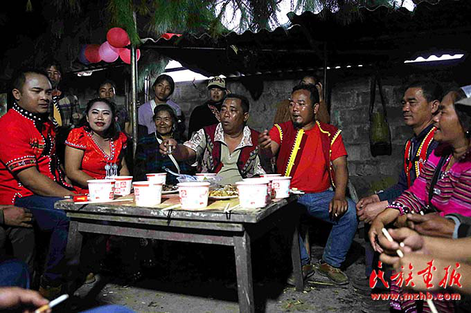 沿著曲折的山路開車一個(gè)多小時(shí),記者來到西盟縣秧洛村一組,恰巧碰到了一對新人喜結(jié)良緣。清脆的木鼓聲在大山里回蕩,秧洛村的村民喝喜酒、跳木鼓舞。