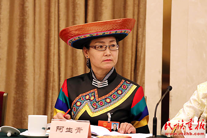 阿生青在青海代表團(tuán)開(kāi)放日上發(fā)言