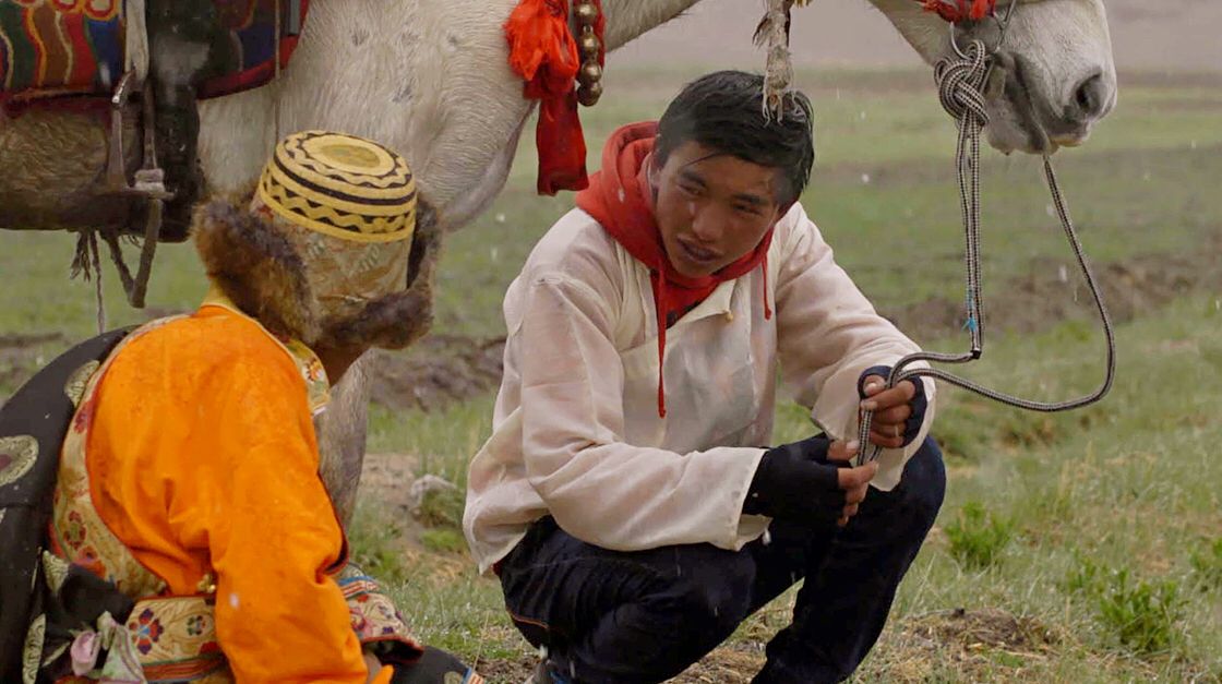 圖片說(shuō)明:賽馬冠軍在雨中訓(xùn)練兒子的騎術(shù)