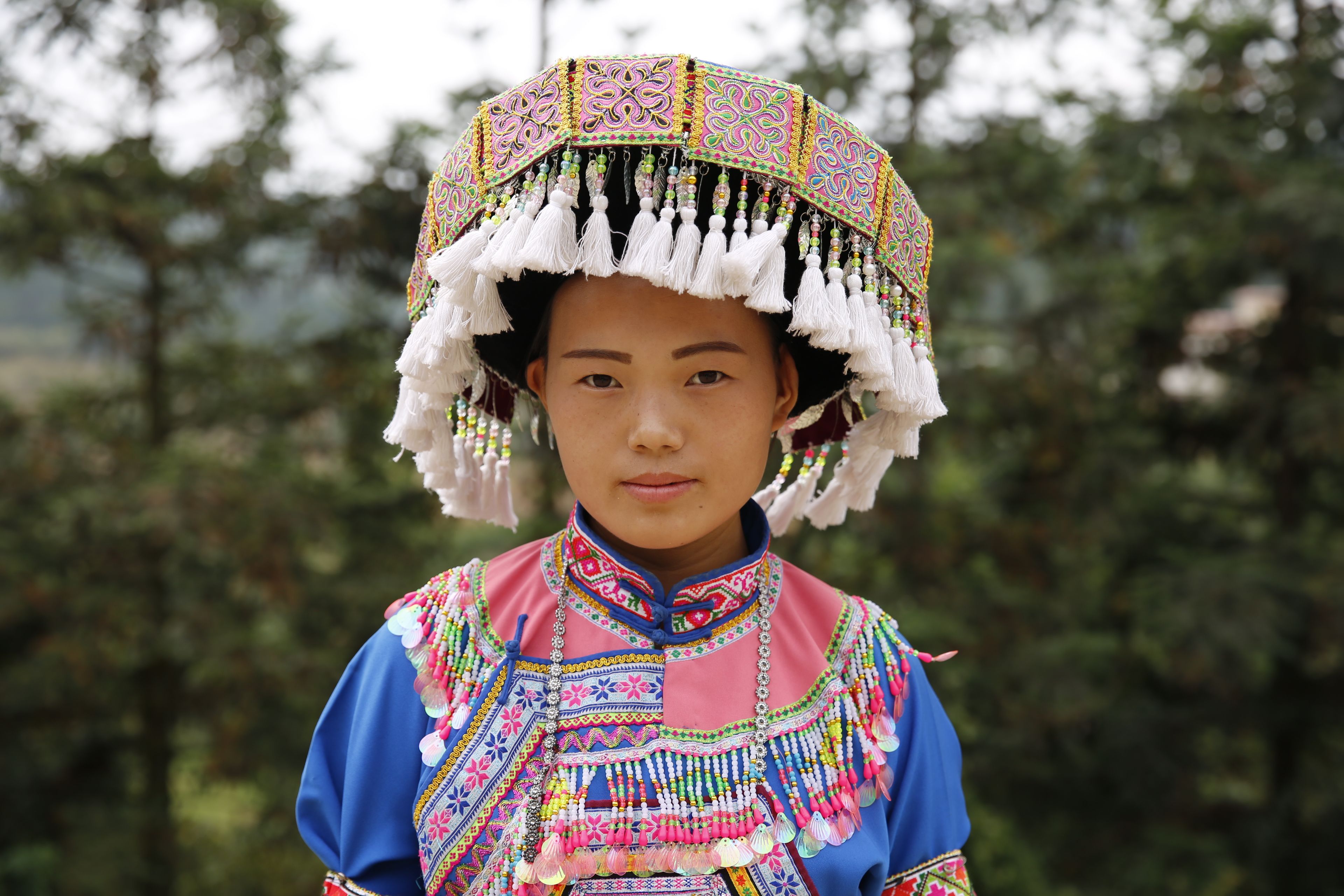 圖片說(shuō)明:貴州貴陽(yáng)苗族女子服飾花帽