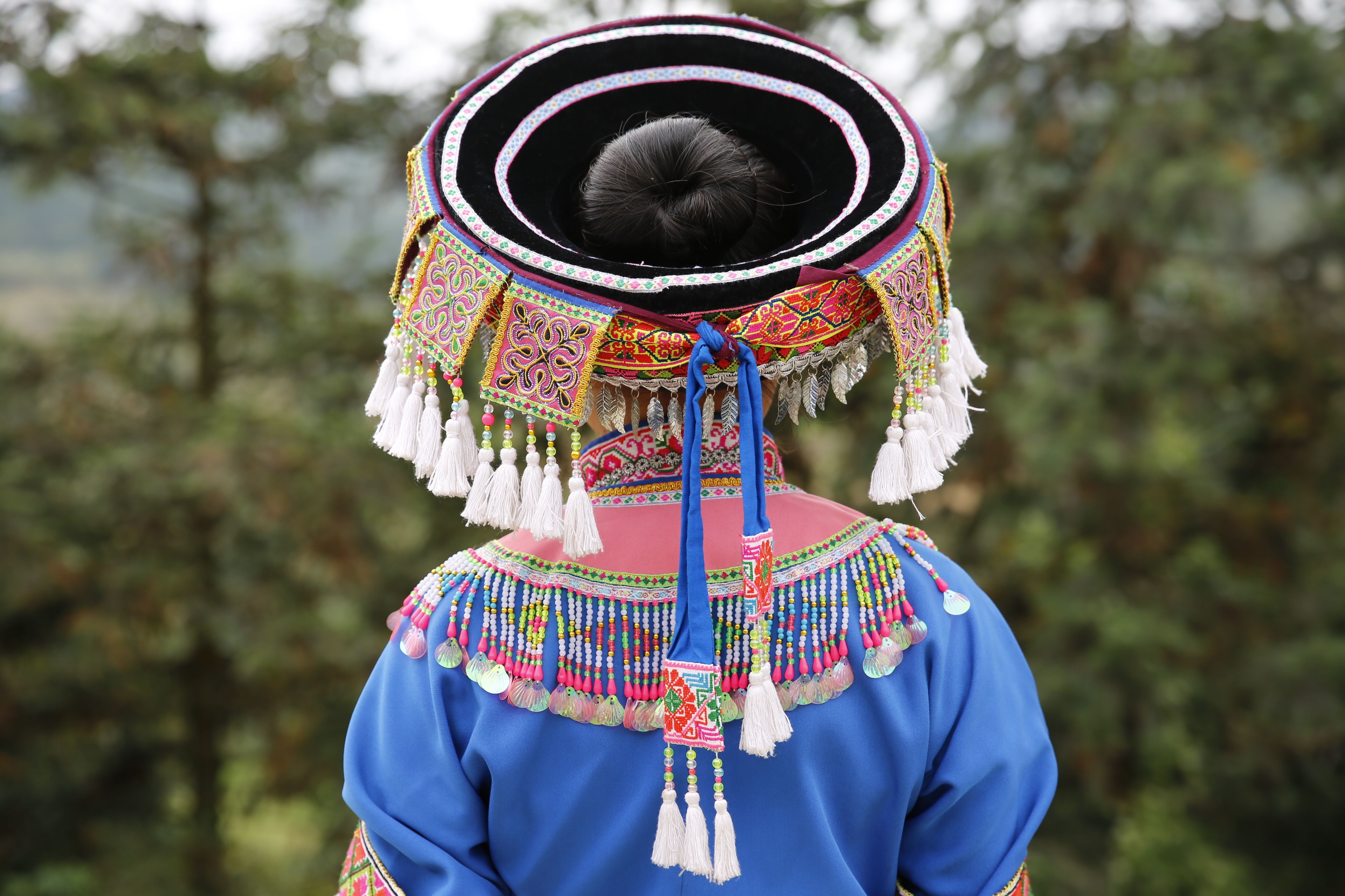 苗族女子服飾花帽-側(cè)面繡花及裝飾1