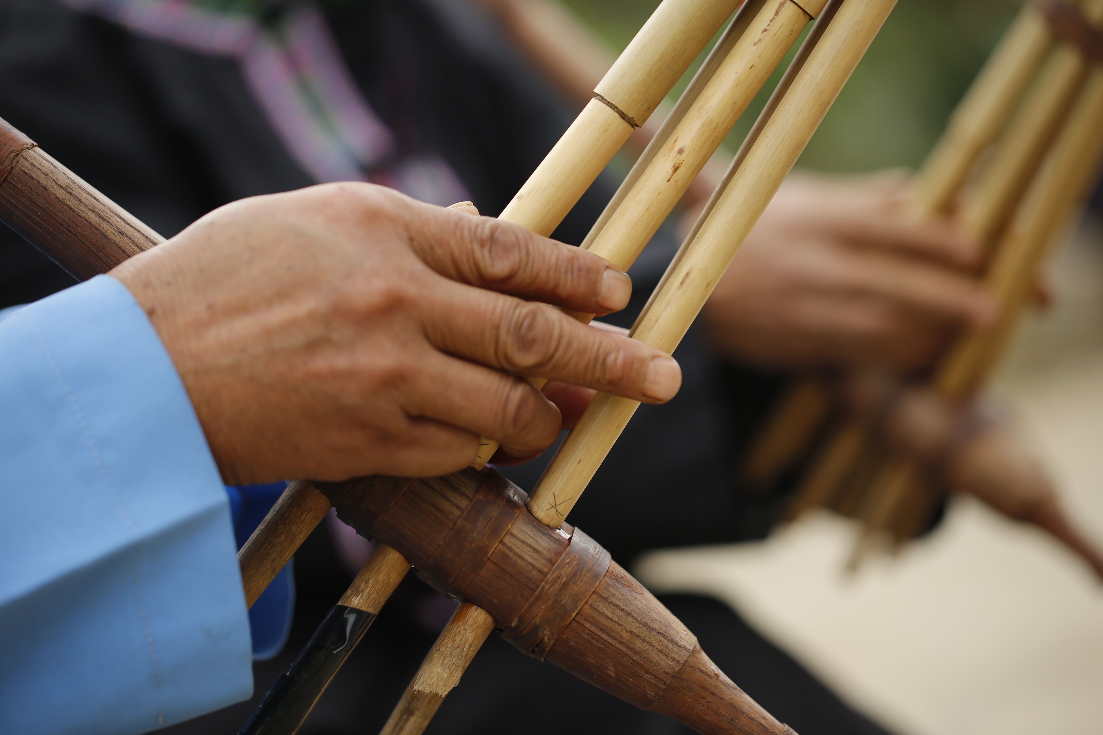 苗族花鼓舞傳承人鄧開倫教授他人吹奏蘆笙2
