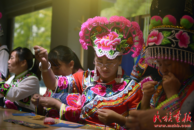 不忘初心,方能遠(yuǎn)行。在上下求索創(chuàng)意民族服飾的同時(shí),盧潔瑩不忘致力于彝族傳統(tǒng)文化的發(fā)揚(yáng)與傳播。2016年起,索玉文化美學(xué)創(chuàng)意有限公司與楚雄市婦聯(lián)、彝繡協(xié)會(huì)共同主辦的,旨在幫助楚雄山區(qū)彝族婦女用傳統(tǒng)手工技藝精準(zhǔn)扶貧的培訓(xùn)項(xiàng)目“彝繡之夢(mèng)”已開(kāi)展了兩年?!皠?chuàng)業(yè)不易,要致富也要帶動(dòng)各族同胞一起致富。”盧潔瑩說(shuō),“我們的培訓(xùn)班每年都開(kāi)辦,就是要幫助繡女們走出大山,走進(jìn)大眾的視角,提供一個(gè)給她們展示與發(fā)掘精美彝繡技藝的平臺(tái)?!?/p>