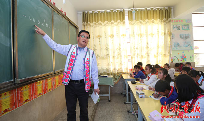 走進(jìn)干凈整潔的教學(xué)樓,陣陣讀書聲漸漸清晰,原來(lái)是六年級(jí)的學(xué)生正在上彝語(yǔ)課??粗J(rèn)真授課的彝族老師,校長(zhǎng)杞萬(wàn)開說(shuō):“建設(shè)德高業(yè)精的雙語(yǔ)教師團(tuán)隊(duì)是我們做好雙語(yǔ)教育的根本保證,因此我們每年都選派優(yōu)秀教師參加云南省的雙語(yǔ)教師培訓(xùn),提升教師‘彝語(yǔ)為輔,漢語(yǔ)普通話為主’的雙語(yǔ)教育能力?!?/p>