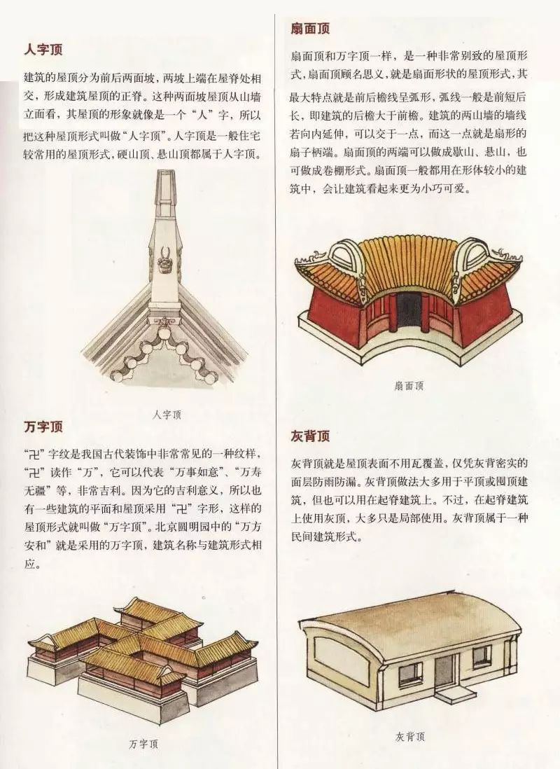 中國(guó)古建筑屋頂千變?nèi)f化,瑰麗多姿,不同的屋頂相互組合、穿插,又會(huì)形成不同的屋頂形式。