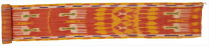 艾德萊斯綢收集于新疆庫(kù)爾勒地區(qū),大面積的紅色之中,點(diǎn)綴著象征維吾爾族生存環(huán)境的黃色,以及伊斯蘭教崇尚的綠色和象征著天空的藍(lán)色。木梳紋、石榴紋、龕座紋等紋樣呈條狀規(guī)則排列,多種色彩拼合出強(qiáng)烈的視覺效果,洋溢著跳蕩激昂的韻律和熱情似火的西域風(fēng)情。