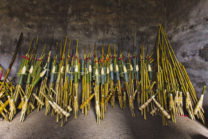 “別以為蘆笙只是一門簡單的竹制吹管樂,制作蘆笙門道多著呢!”楊枝光拿起一只蘆笙先給我講解蘆笙的構造:蘆笙由笙斗、笙管、共鳴筒、簧屯、箍等部件組成。笙斗是木制呈葫蘆瓜狀構建,笙斗是空的,是蘆笙的聲腔。共鳴筒則是連在笙管上的大竹筒,作用是放大聲音……