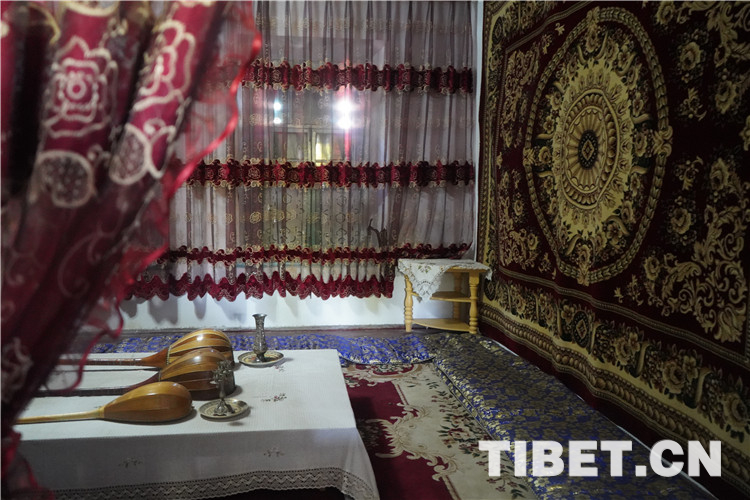 圖為吐達洪巴依大院房間內(nèi)的擺設(shè)。