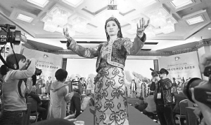 2012年12月,由全國《格薩(斯)爾》工作領導小組辦公室、青海省《格薩爾》工作領導小組辦公室等聯(lián)合主辦的中國·青海·果洛《格薩爾》藝人成果展暨圓光中的《格薩爾》史詩藝術展在北京舉行。圖為開幕式上模特在展示《格薩爾》史詩中所描述的民族傳統(tǒng)服裝。 資料圖片