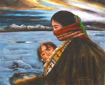 “以前畫畫時,對自己的最高要求就是畫得要逼真,把油畫畫得像一幅放大了的照片,而現(xiàn)在關(guān)注的是如何畫出能體現(xiàn)當代的畫面。西藏的美是無窮無盡的,我就想用繪畫的方式窮盡一生去追求,展現(xiàn)大美西藏?!比缃竦乃髀幔チ顺醭雒]時一味追求畫面質(zhì)感的匠氣,多了些許內(nèi)心對西藏這片熱土深層次的思考。他筆下的西藏是一片充滿生機的土地,濃墨重彩之間,既有對傳統(tǒng)和過往年華的回望和懷念,又在仿若不經(jīng)意間透過一個眼神、一抹色彩、一個小物件盡情詮釋活力和希望。