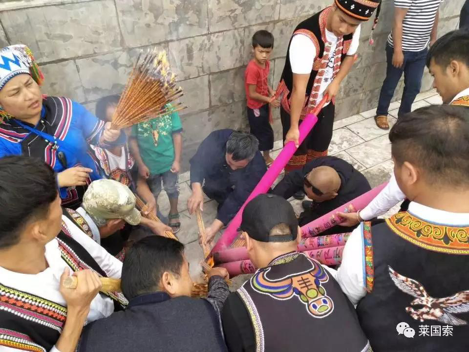 祭祖大典隆重、肅敬、莊嚴(yán)。儀式: 1、吹奏長號(hào)樂、鳴禮炮,敬告天地東西南北中五方神抵;2、奏樂(長號(hào)、噴吶),請(qǐng)彝族畢摩上香;3、奏樂(長號(hào)、噴種),敬貢三牲,果品,圣水,豬頭,雞;4、請(qǐng)彝族畢摩撒五谷,念誦《散五谷詞》;5、彝族畢摩向祖先阿普駕幕行跪拜禮,恭誦《祭祖祈福經(jīng)》;6、請(qǐng)各地同胞代表恭誦《祭文》;7、請(qǐng)各位領(lǐng)導(dǎo)、各位來賓、各位朋友全體起立!向彝族祖先阿普篤幕及六祖行叩首禮:一鞠躬!再鞠躬!三鞠躬!禮畢!8、奏樂(長號(hào)、噴吶),恭請(qǐng)貴賓敬獻(xiàn)高香。