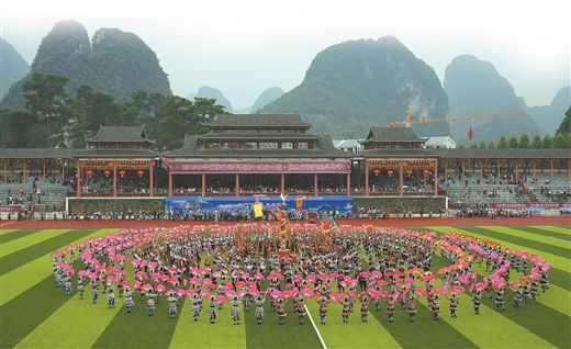記得住苗寨的鄉(xiāng)愁。位于融水縣城西北部的田頭苗寨,自然景觀秀麗,民族風情濃郁,是國家3A級景區(qū)?!皫啄昵拔襾磉^這里,這次故地重游,發(fā)現(xiàn)苗寨變得更美了,也更好玩了!”貴州游客張女士說。登上吊腳木樓,邁上風雨橋,觀看小橋流水、層疊梯田、千年古榕,參與“蘆笙踩堂”“牙變嬉春”“斗馬”“打同年”“火把節(jié)”等獨具特色的民俗活動,品味古寨百家盛宴,已成為很多游客尋找鄉(xiāng)愁的途徑,融水“苗寨鄉(xiāng)愁”名片越擦越亮。