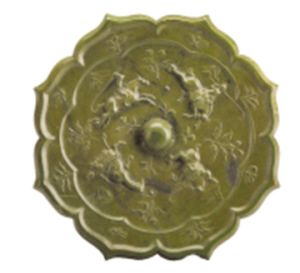 目前我國(guó)僅存三面有關(guān)打馬球圖案的銅鏡,一件為故宮博物院的傳世品,另一件收藏于安徽懷寧縣博物館,而以揚(yáng)州出土的這一面銅鏡保存最好,是唐鏡中的珍品。這枚打馬球紋銅鏡收藏于江蘇省揚(yáng)州博物館,直徑18.5厘米、厚1厘米,1965年出土于揚(yáng)州邗江泰安金灣壩工地。鏡為菱花形,圓鈕。鏡背主紋為4名騎士,有的高舉鞠杖,作搶球狀;有的俯身向前,鞠杖向下,作擊球狀;四馬馳騁,四人搶球,氣氛熱烈緊張;人與球之間襯以高山、花卉紋,顯現(xiàn)出在郊外運(yùn)動(dòng)場(chǎng)比賽的情景,更添一絲活潑的生活氣息。