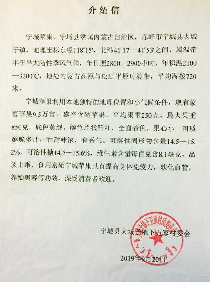 寧城蘋(píng)果是寧城縣巴林果樹(shù)試驗(yàn)場(chǎng)與沈陽(yáng)農(nóng)業(yè)大學(xué)合作,于1978年以哈爾濱東光蘋(píng)果為母本和日本富士蘋(píng)果為父本雜交而來(lái),經(jīng)過(guò)十幾年時(shí)間選育而成的蘋(píng)果。1997年內(nèi)蒙古自治區(qū)科學(xué)委員會(huì)組織國(guó)內(nèi)著名果樹(shù)專(zhuān)家進(jìn)行鑒定,定名為蒙富,寓意內(nèi)蒙古的富士。2015年7月“寧城蘋(píng)果”通過(guò)國(guó)家工商總局商標(biāo)局注冊(cè),取得“寧城蘋(píng)果”地理標(biāo)志證明商標(biāo),推動(dòng)了本地蘋(píng)果產(chǎn)業(yè)健康快速發(fā)展。